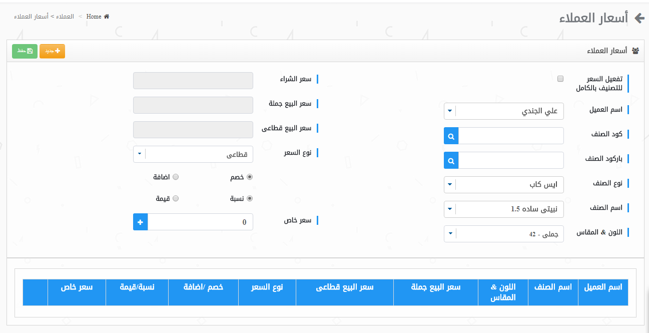 - إدارة العملاء وتسجيل متطلباتهم من المنتج النهائى.