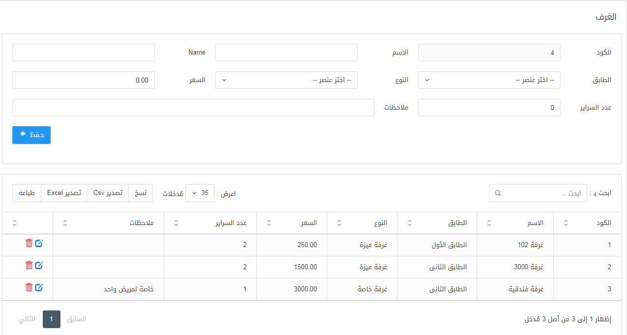 - إدارة كاملة لحسابات المرضى وتسجيلهم في غرف المستشفى.