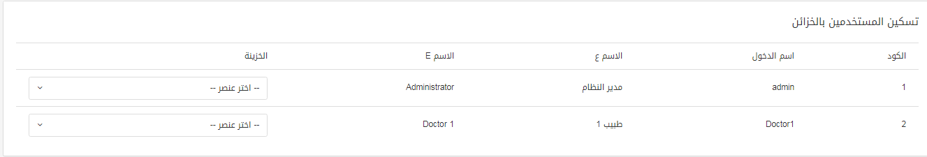 - إضافة المستخدمين للخزينة (إضافة المستخدم حسب فرع الخزينة أو اسمها).