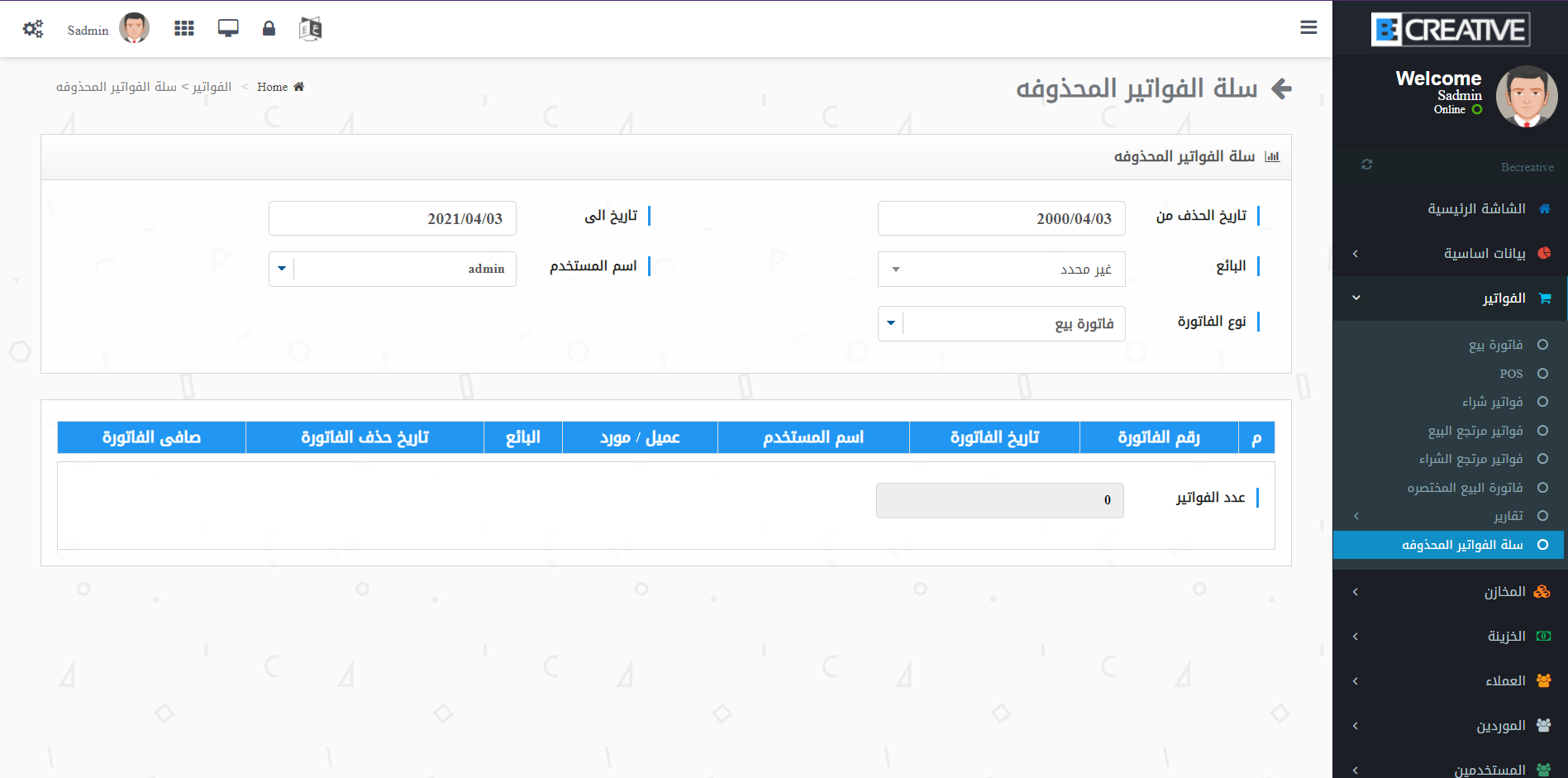 - متابعة الفواتير المحذوفة