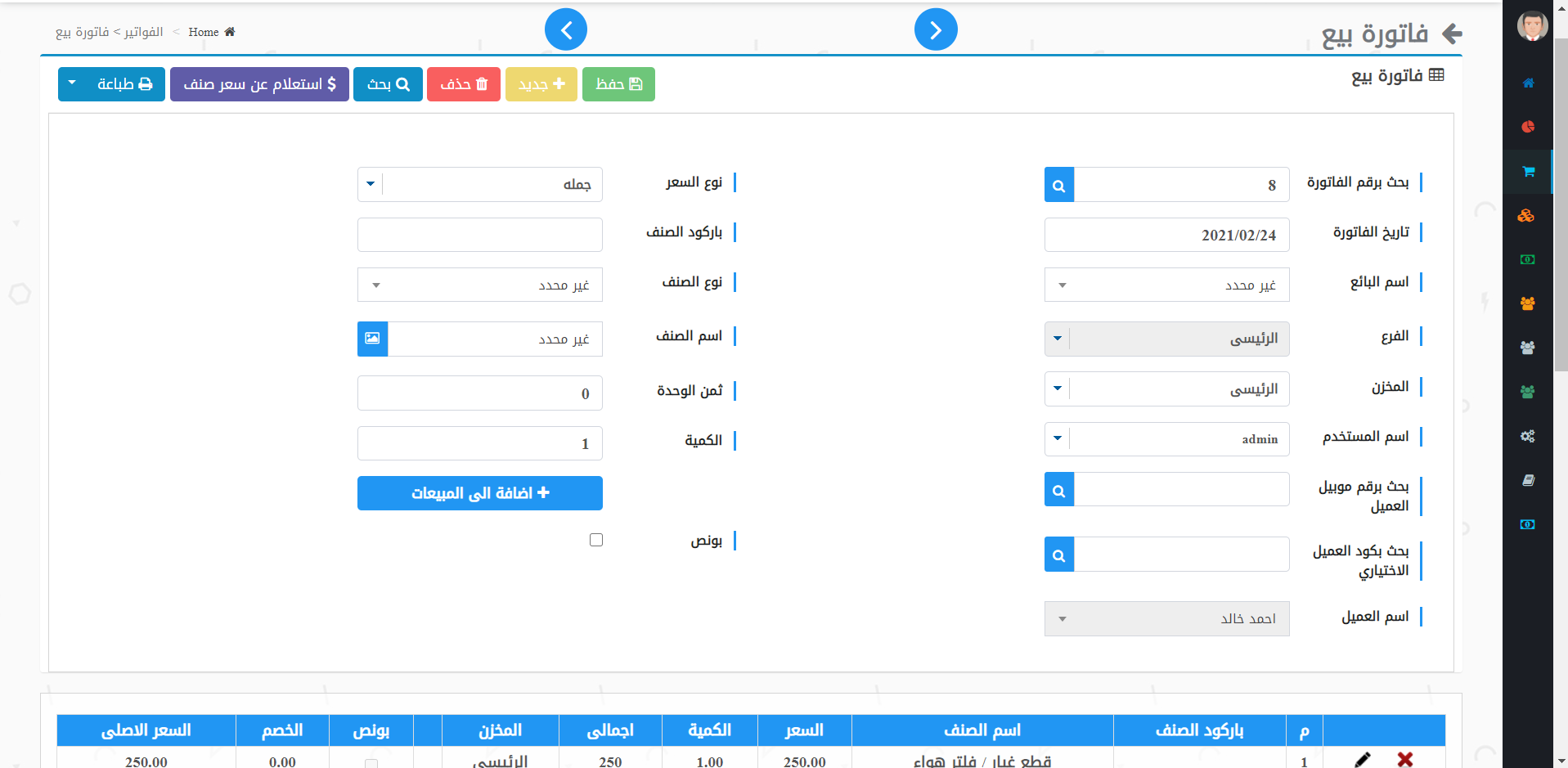 - اصدار فواتير البيع والشراء ومرتجعات البيع والشراء .
