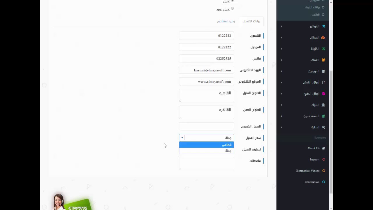 تعريف العملاء وحسابات العملاء داخل برنامج بي كريتيف