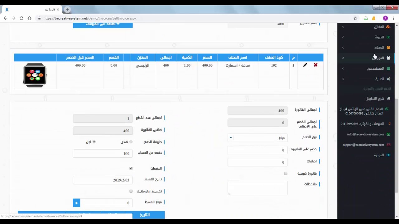 الدفع بالتقسيط فىالفواتير برنامج حسابات بى كريتيف